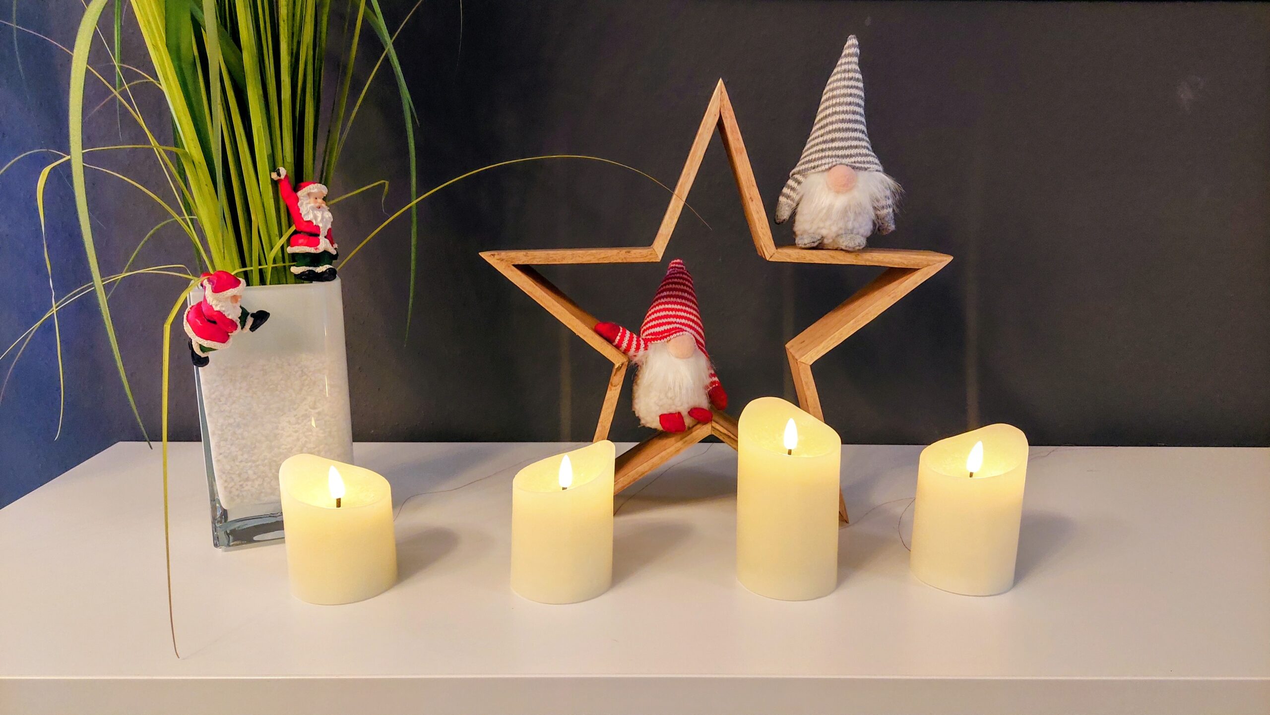 I recently picked up a set of four realistic LED wax candles – they flicker nicely and really look like the real thing. Cost? A whopping € 9,95 for the set of four. The downside: they aren’t smart, and each candle runs on 2 × 1.5 V AA batteries – that’s 8 batteries in total for my set.