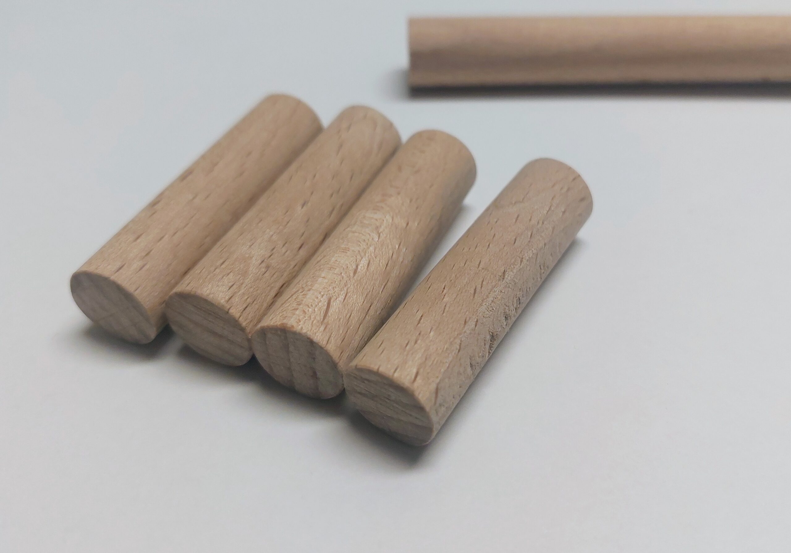 Instead of buying a commercial AA battery dummy, you can easily create one yourself at very low cost. I used a hardwood round dowel with the same diameter as an AA cell and cut it to the exact AA length, including the small height difference of the positive terminal. After cutting, I drilled a small pilot hole into each end to host the contacts.