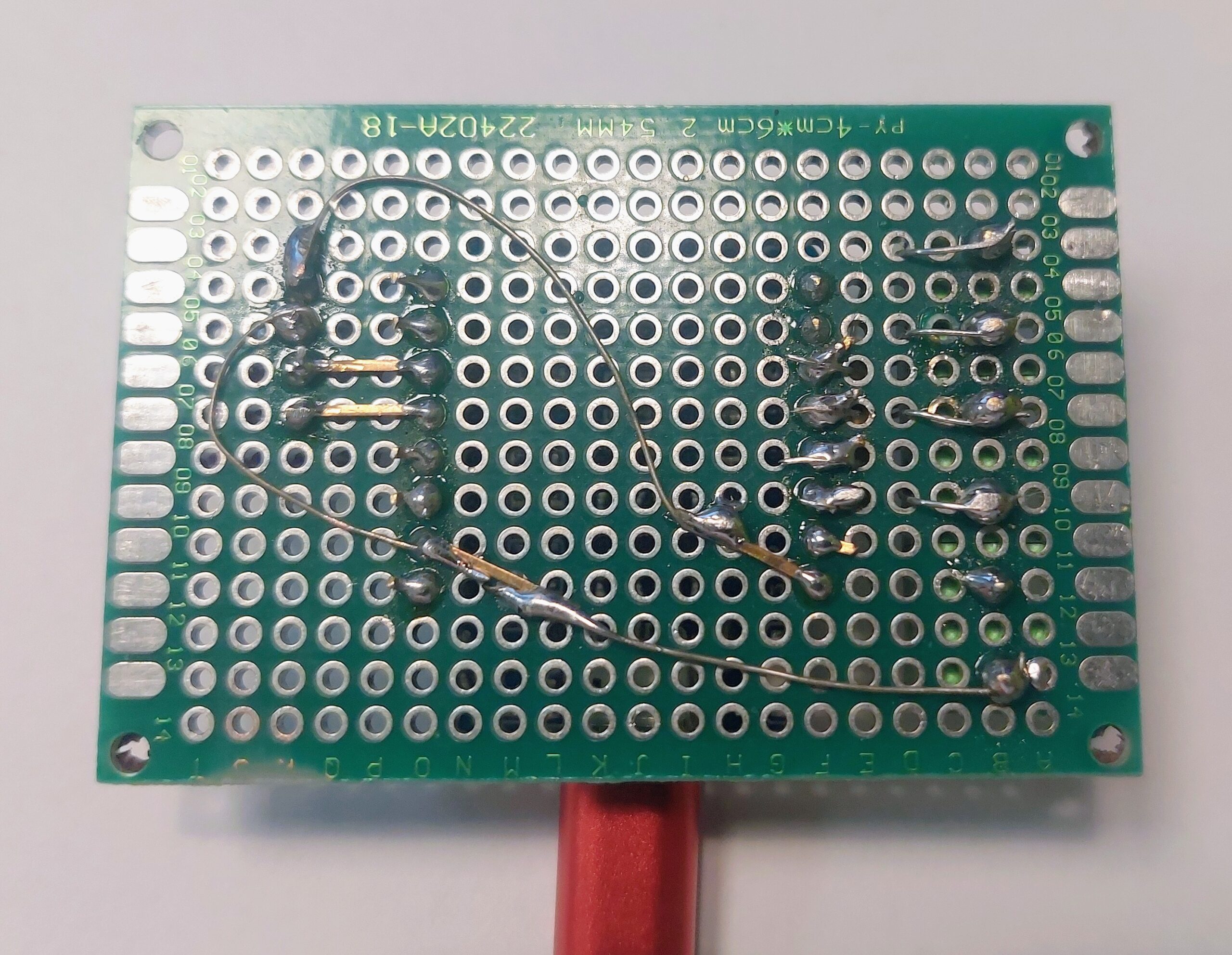 Additionally, resistors are placed between the GPIO outputs of the Wemos and the terminal blocks. They are inserted from the top side and soldered on the underside of the PCB. This provides proper current limiting while keeping the top side clean and all connections easily accessible.