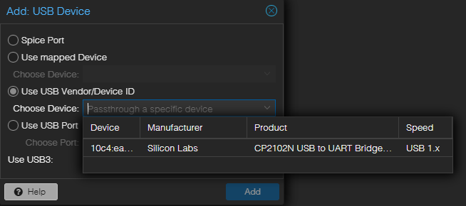 Connecting the Z-Wave Controller to a Proxmox Virtual Machine