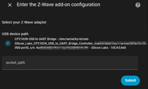 /dev/serial/by-id/...). - Save the configuration and start the add-on.
