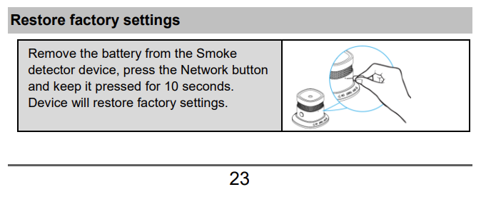 - After successful inclusion, wait until all entities (battery, smoke state) appear – may take a few minutes due to battery wake-up intervals.